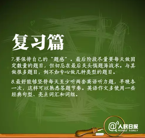 今天小编为大家分别整理了给考生和家长们的备考建议、减压方法、考前注意事项及饮食安排,助力考生2025冲刺高考