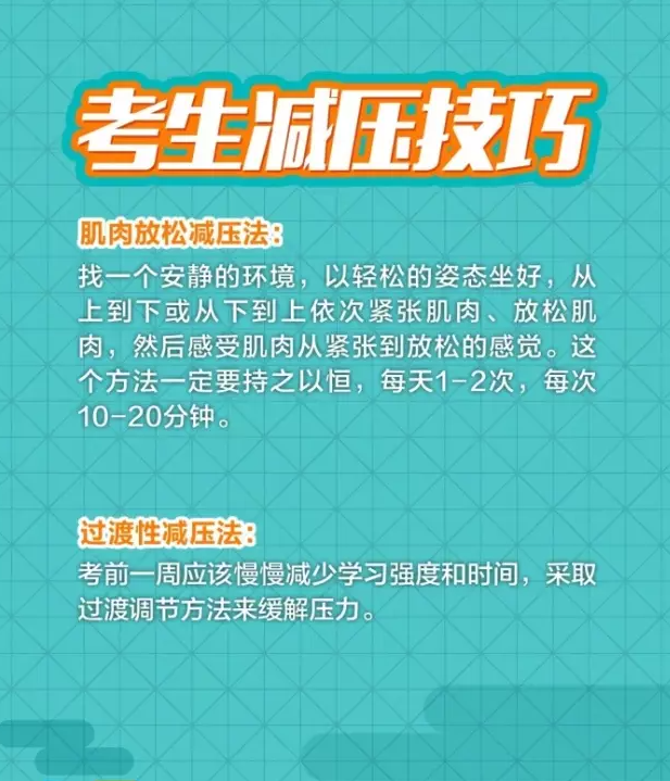 高考前夕孩子在家复习大都是非常用功的,一做题就是一个上午或是一个下午或是一个晚上,有时搞得精疲力竭,头昏脑涨,不仅影响心情,也影响复习效率。