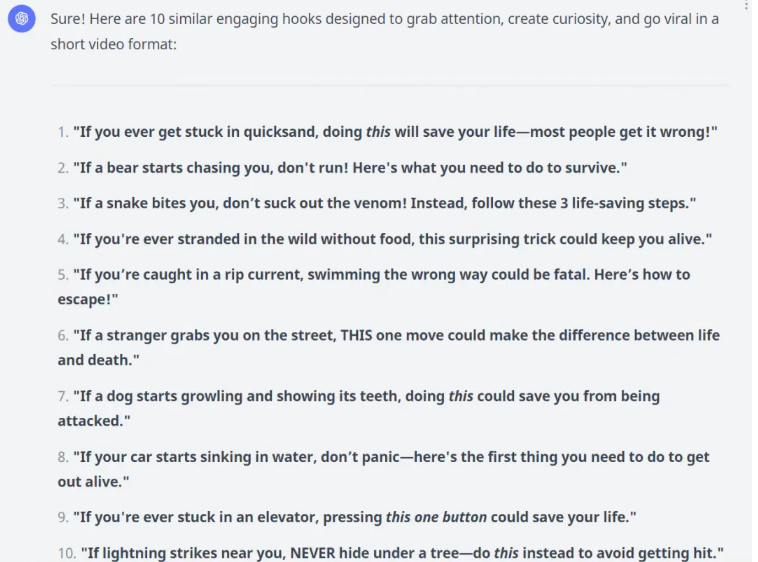 找出其中能吸引人的开场白,复制下来,然后用ChatGPT,输入: