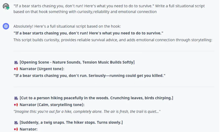 挑选一两个最有力的,让ChatGPT根据钩子写成完整脚本