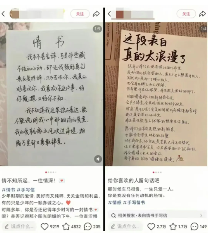 在小红书上搜索“手写情书”“表白文案”“婚书”等关键词,只要看到点赞量超过1000的内容,就可以拿来参考和借鉴